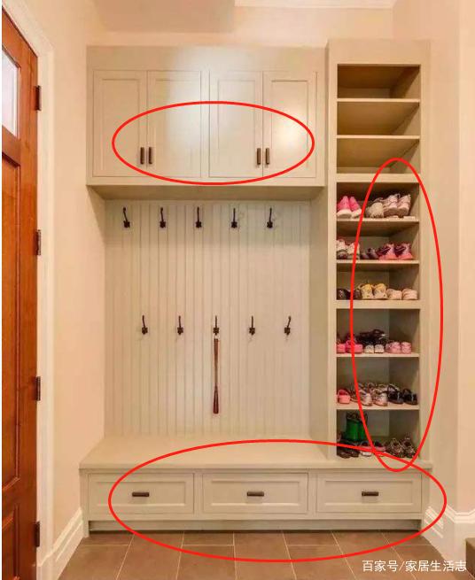 1、玄關(guān)的收納很重要,全家人的鞋子加在一起數(shù)量多,需要大的鞋柜才能裝得下,我們可以利用墻面空間全部打上柜子,這樣收納空間要比買的多,也更加實用。